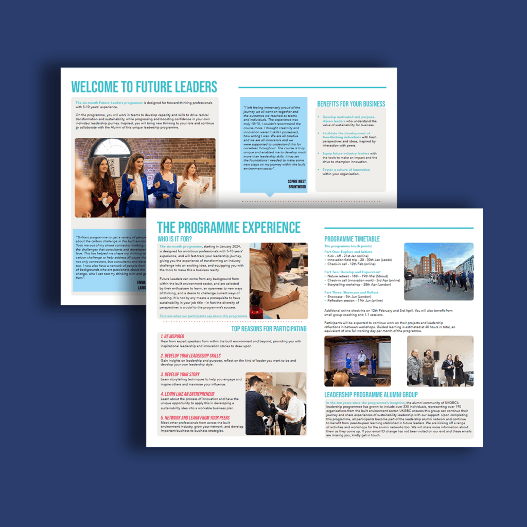 The renowned six-month Future Leaders programme is designed for forward-thinking professionals with 5-10 years’ experience in the built environment industry. Through a mix of online and in person workshops, retreats and showcase events, participants work in teams to develop the skills and personal confidence to drive transformational change in their organisation. This transformation will not come about by business as usual, but through a radical and fundamental shift, in which sustainability and innovative thinking are strategic drivers.